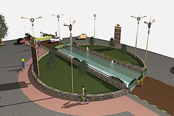 Ακολουθεί ο σχεδιασμός του κυκλικού ρυθμιστικού κόμβου. Σε αυτόν συμβάλλουν οι πέντε λεωφόροι που συνδέουν την παλιά με την νέα πόλη. Είναι τρεις δεκαεξάμετρες δηλ. η λεωφόρος η οποία διέρχεται μπροστά από το βιβλιοπωλείο «κύβος» και άλλες δυο ανώνυμες που τερματίζουν στη Δυτική περιμετρική της παλιάς πόλης. Είναι η λεωφόρος της διώρυγας κυμαινόμενου πλάτους περίπου 22,0μ και η λεωφόρος των 20μ της δυτικής περιμετρικής πλάτους του βορειοδυτικού οικιστικού συνόλου της «Καλλονής» που ξεκινά από το ύψος του 6ου Δημ. Σχολείου.
